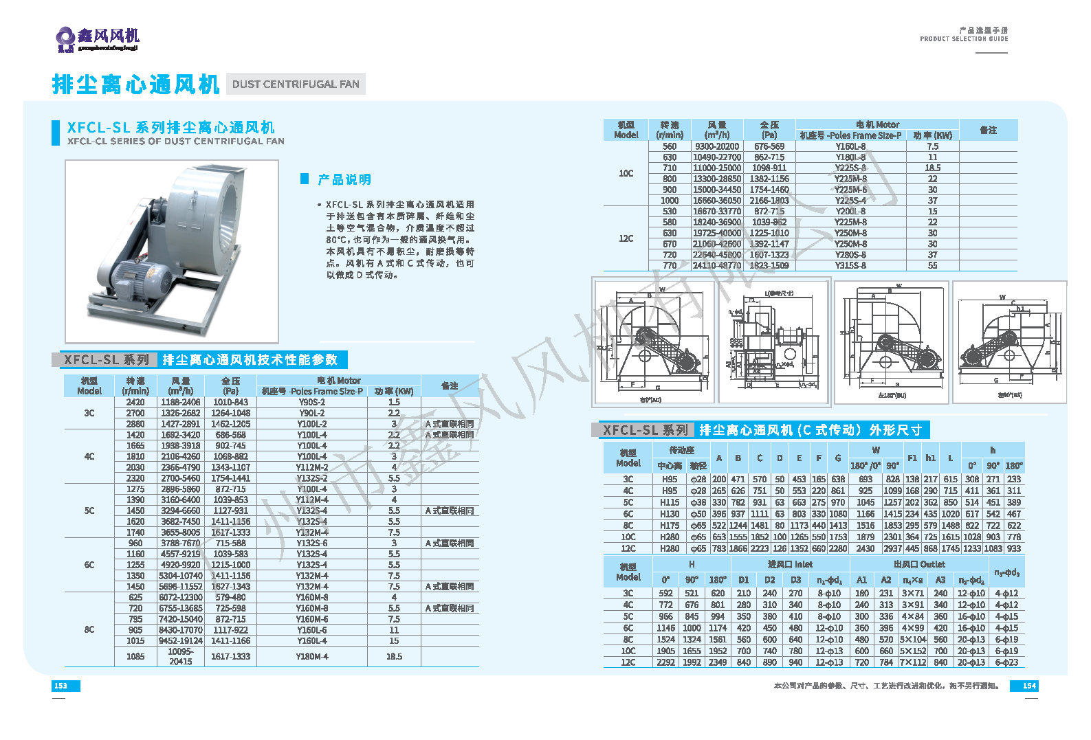XFCL-SL系列排塵離心通風(fēng)機技術(shù)性能參數(shù):